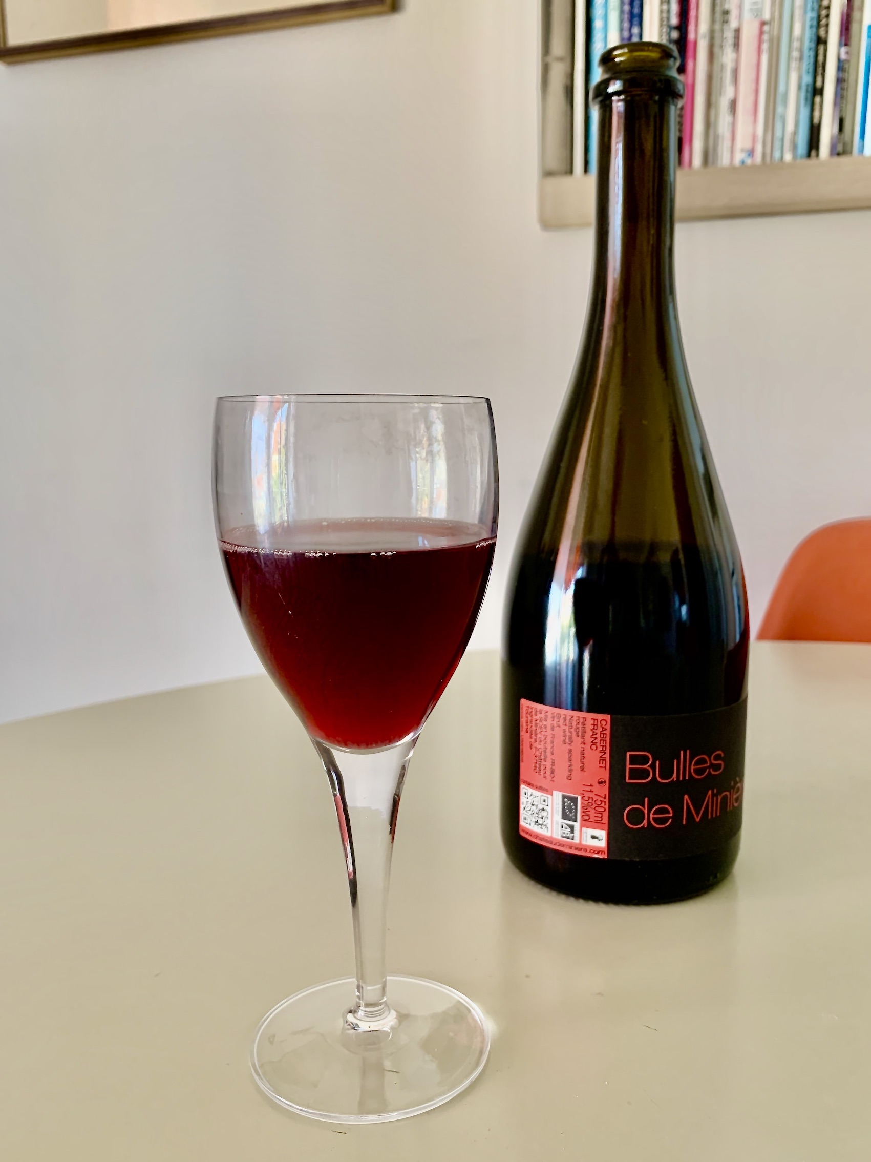 これがナチュラルな発泡ワインでして、アペロにぴったりなんである。Bourgeuilのワインは割と普通に発泡性なんだけど、このワインはMさんによるとクレモン(シャンパーニュに近いスパークリングワイン)なんだそうな。