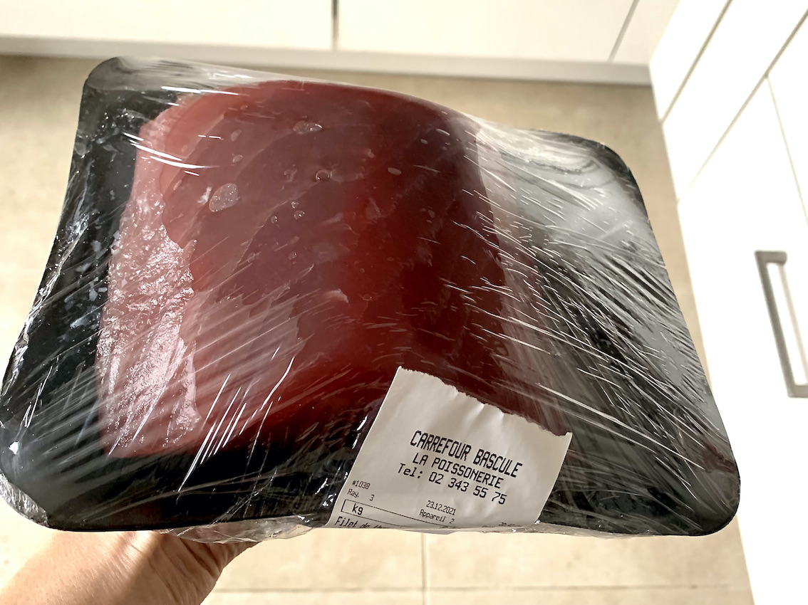 1.2キロって頼んだんだけど結局1.3キロで100グラムオーバーざんす。これで大体70ユーロくらい。いや〜こんなに大量のマグロ買ったことありませんわ。