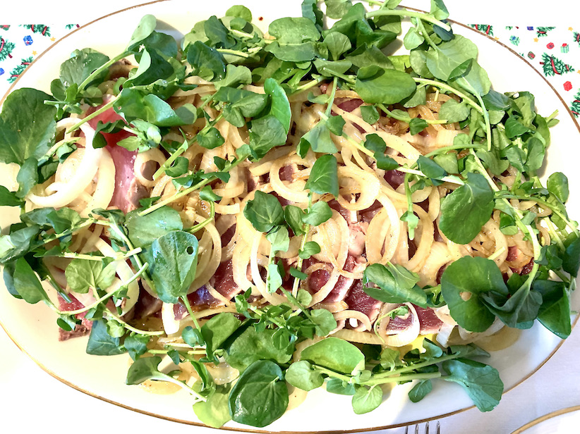 さて、そうなると料理人は当然ワタクシってことで何をしようかと考えた末、L’île d’Yeuで好評だったマグロのタタキをメインにすることに。