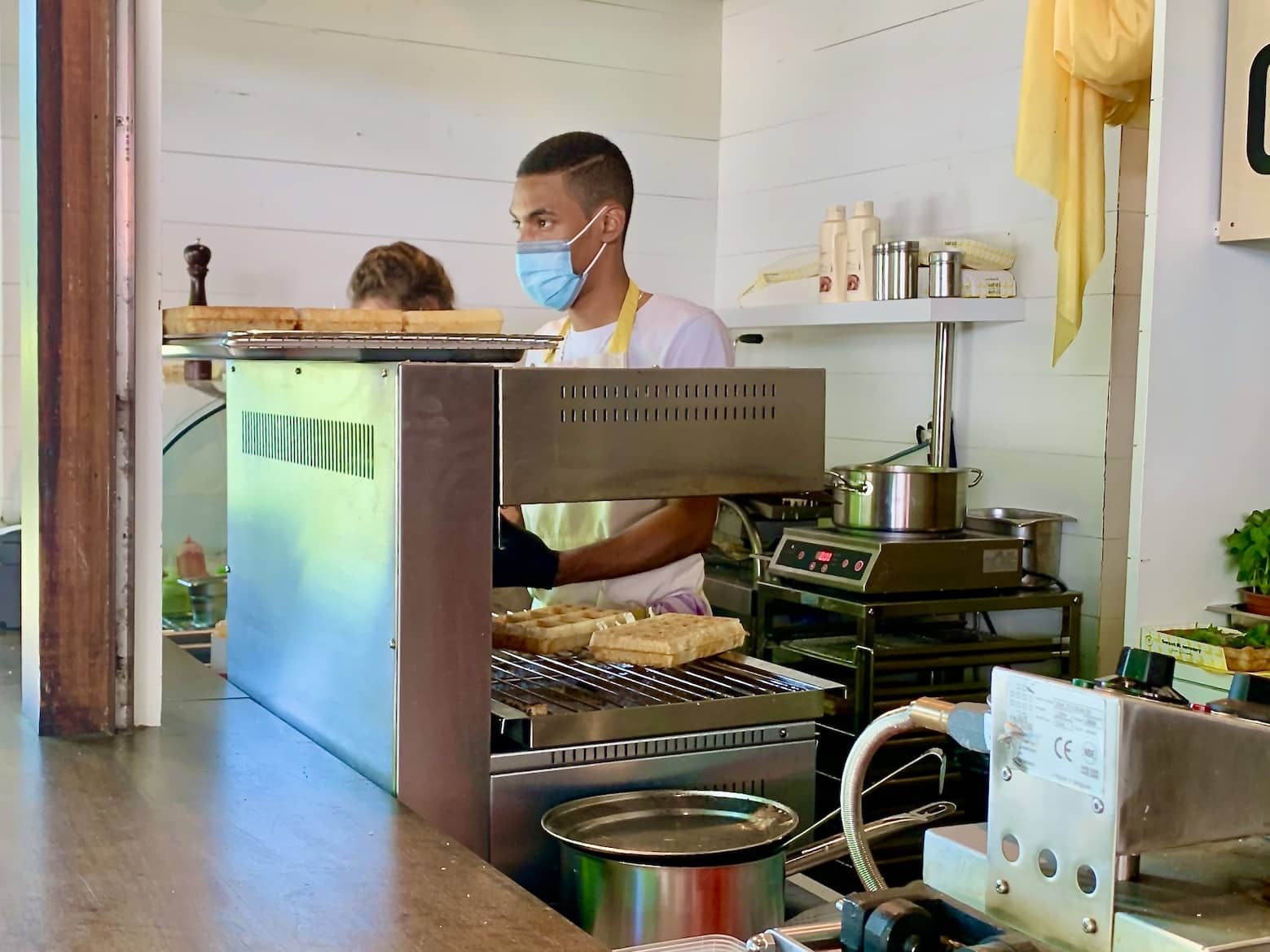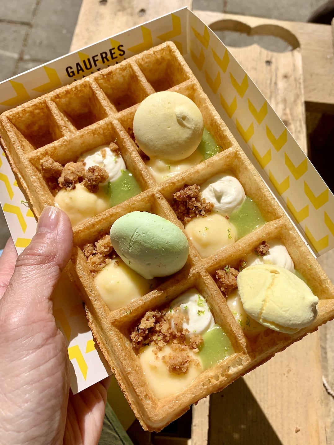 これがですね、サクッサクで美味しいの。確かに移動バンで売ってる2.50ユーロのゴーフルとは一線を画すクオリティ。トッピングも良く考えられてて甘すぎずゴーフルとナイスマッチング。メレンゲ苦手なワタクシでもこのメレンゲは甘くなくてOKでした。ワタクシ的にはレモンのソースが若干甘いかな〜とは思うものの、スナックじゃなくてデザートと思えばこれはOK。