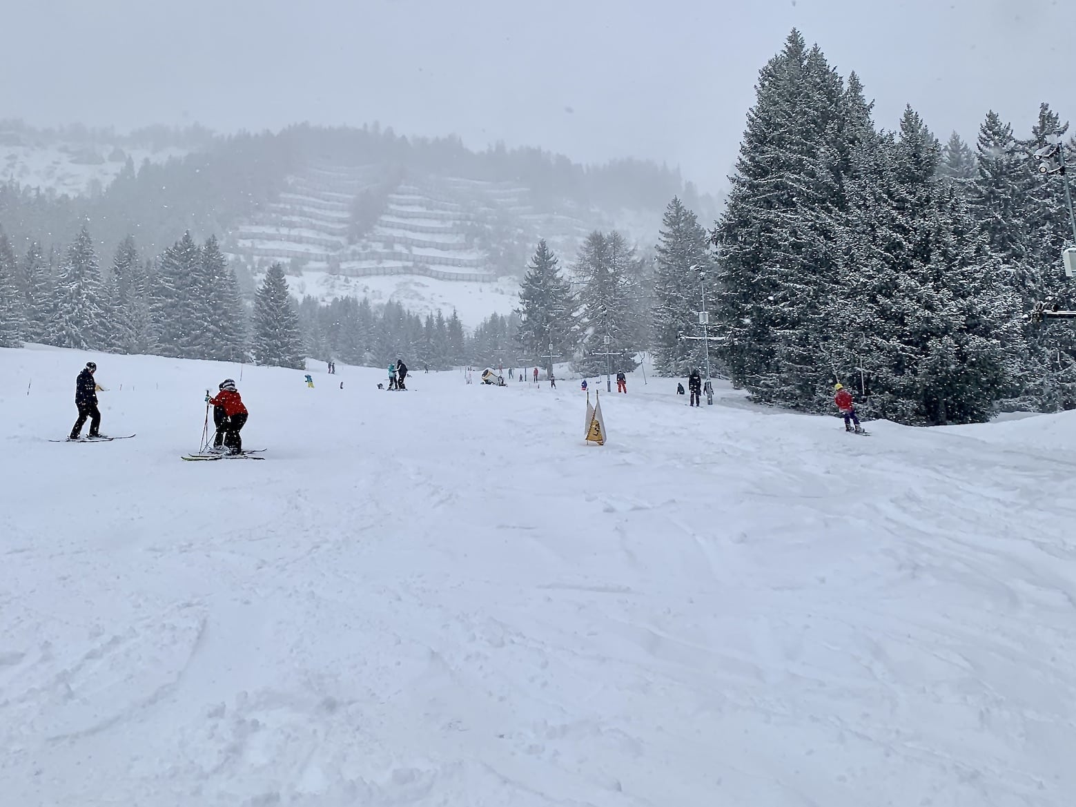 細かい雪がしんしんと降る中のスキーはこんな感じ