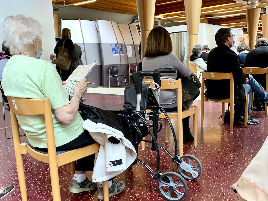前回は午前中だったんですが今回は午後。Paulが2時半くらいでワタクシはその20分後。ちょっと時間差なんだけどもしかしたら一緒に行けば前倒しで打ってもらえるかもしれぬとワタクシの時間の1時間前に家を出発いたしました。Paulに「Dafalgan飲んでく?」と聞いたら前回大した痛みもなかったPaulは特に必要なしと言うんで、じゃあワタクシも飲まないで行こうと(後で飲まなかったのを若干後悔いたしました・泣)。