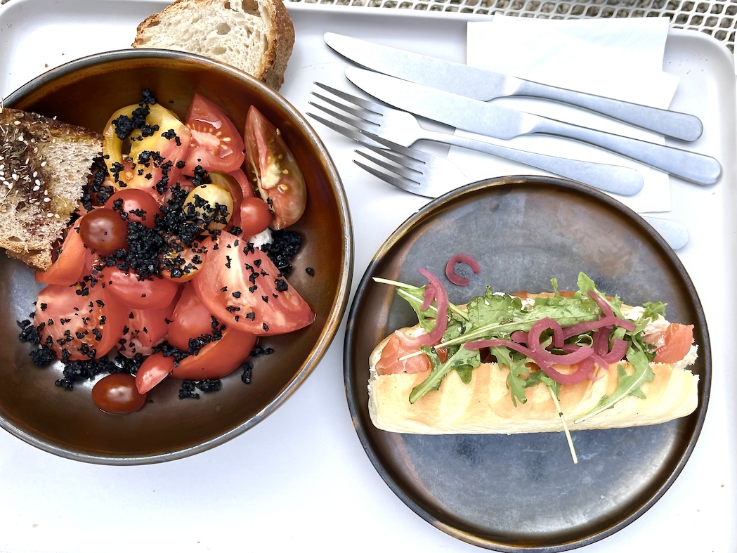 et tranche de pain pimentée – ま、トマトサラダざんすね。