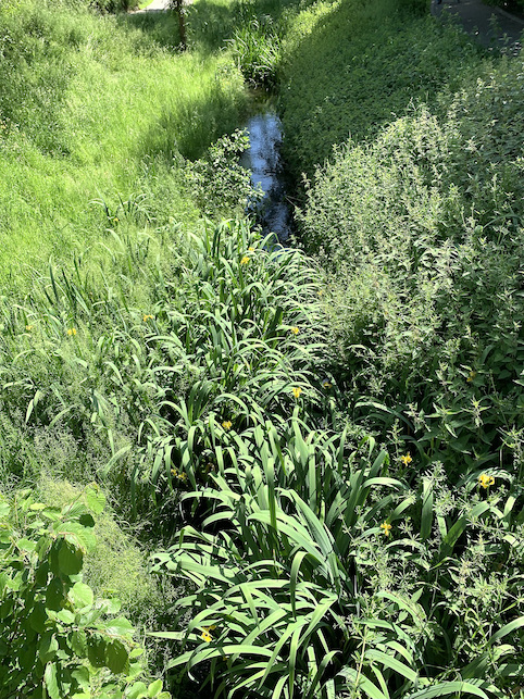 川辺には黄色いアイリスが満開(あんまり見えてないけど・汗)。