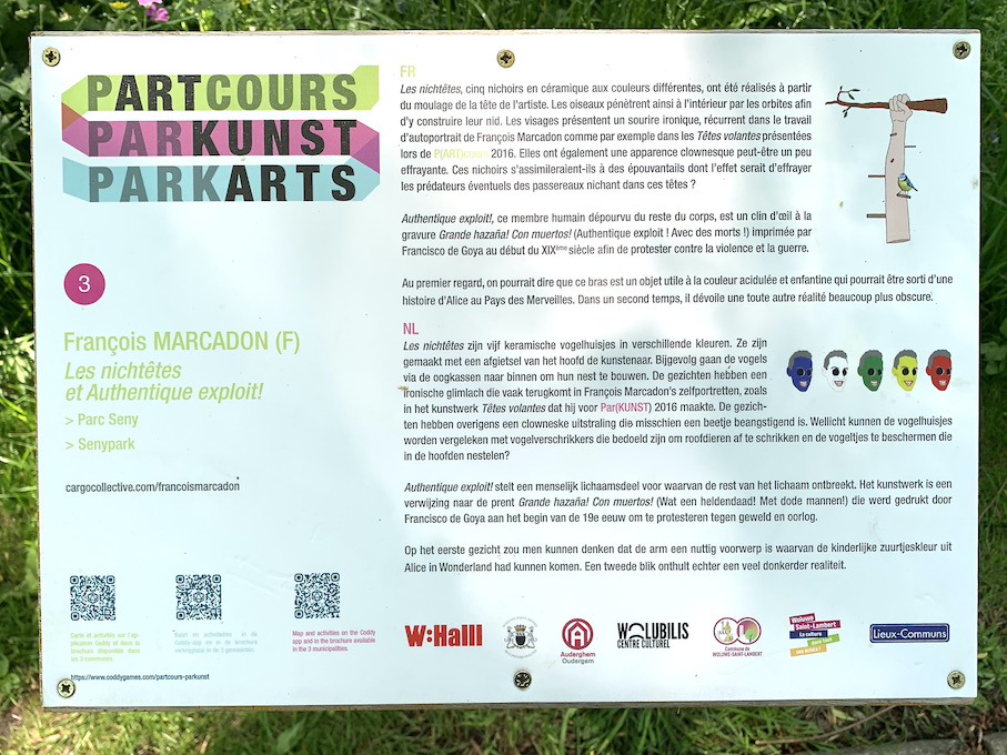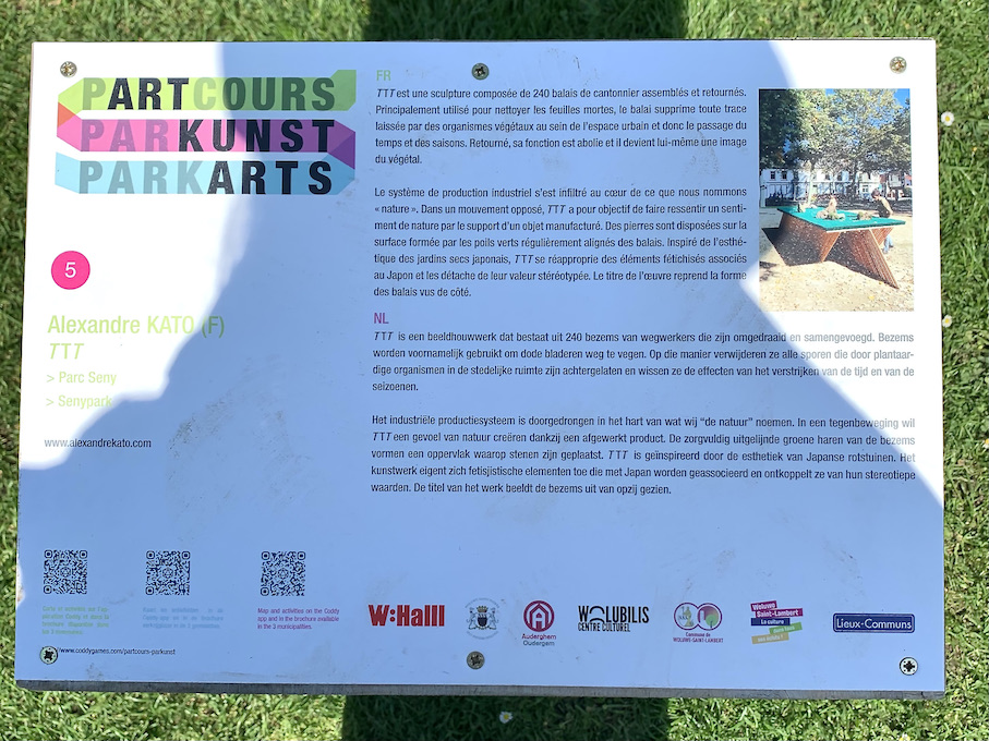 PARTCOURSなんてネーミングが言葉遊びでシャレてるじゃありませんの。しかも3ヶ国語表示でもきっちりつじつま合わせてるってのも感心。でも多分最初にフランス語で考えたんじゃないかというのは(周回)コースのparcoursに公園のparcで更にそこにアートのartを突っ込んでくるという力技(オランダ語と英語は公園とアートの2つを組み合わせておりますね)。ヤルね〜。