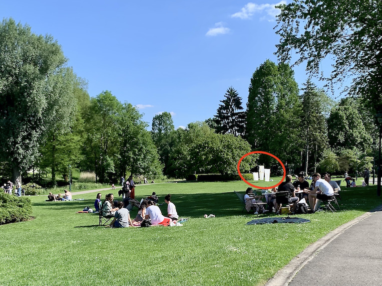 これらアートはあちこちに展示されてるんで公園内にあるQRコードを読み込むか、ワタクシたちみたいにマップで確認しながら見つけることになるんだけど、点々と配置されてるんですぐには見つからないようになっております。