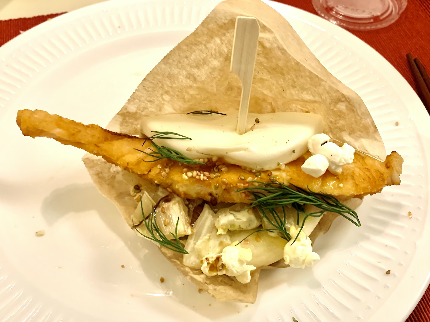 さつまいものフリットとBaoがひとつ(お腹の空いたSeanがいきなり食べ始めたため既にBaoはひとつ出払っております)。