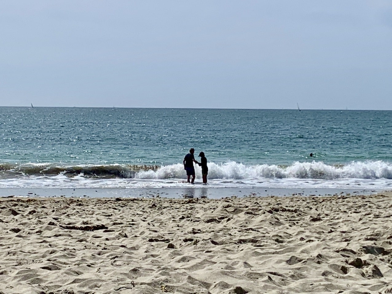 Seanは波に洗われるのが大好きなんで海から出てこなくなるのがお約束。Paulは流石にお付き合いできないんで足を漬けるだけ。ワタクシも足を入れてみたんですが、お腹まで入っちゃうと体中が冷えちゃいそうな感じで早々に海から上がってこんな感じ