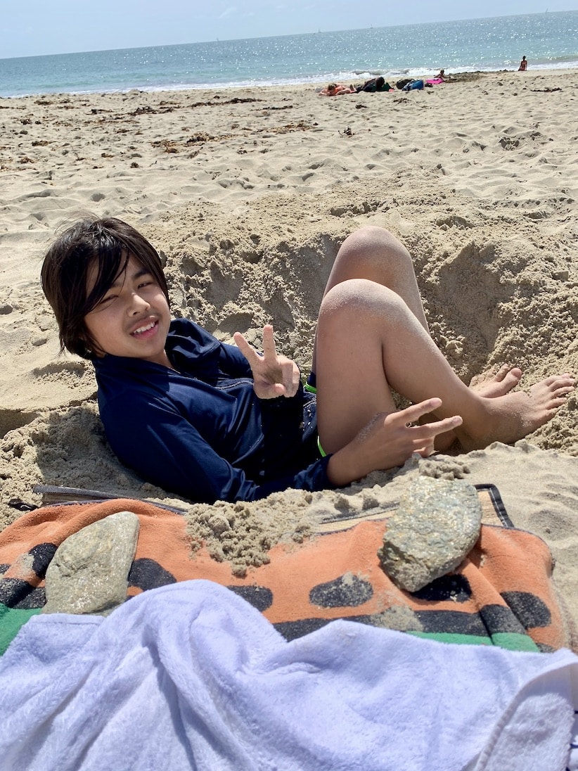 我が家にはSeanが小さい頃に揃えたビーチの砂遊びグッズがちゃんとあるんですが、中学生になったらもうしないだろうと持ってこなかったら、どうやらそういうのは歳は関係なくやりたいみたいざんすね。