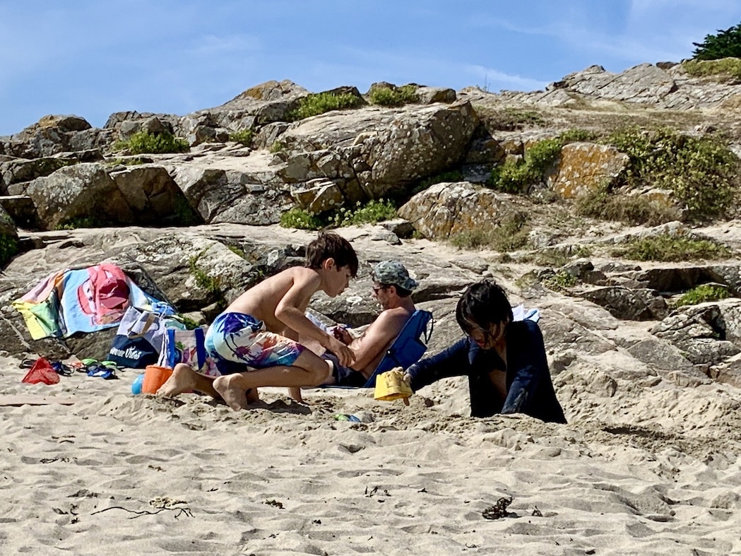 後で聞いたら、近づいてSean「大きい穴だね〜」男の子「うんうん」男の子のパパ「一緒にやる?」Sean「オッケ〜」って(笑)。相変わらず人見知りという文字はSeanの辞書にはない様子。すっかり仲良くなってモンブランの辺りから来たんだって〜なんて情報もゲットしておりました(南仏のほうが近いのにわざわざブルターニュに来るってのはやっぱり人混みを避けるためかしらね)。